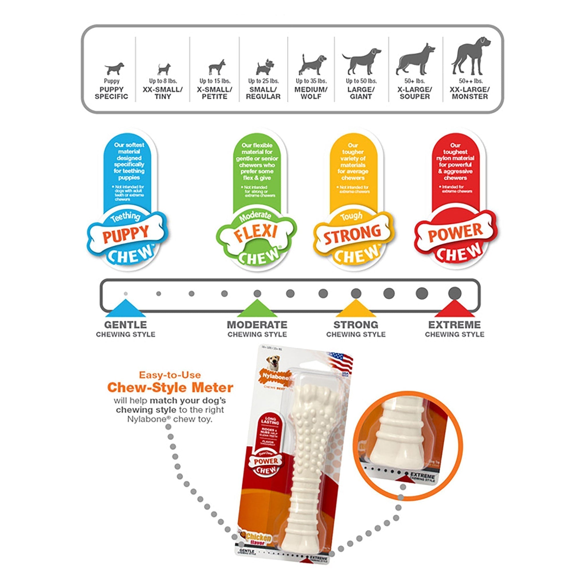 This Nylabone Power Chew Dura Chew X Bone contains the savory beef flavor that dogs love! Built to withstand the toughest chewers, this durable nylon dog toy for aggressive chewers features four textured ends that help clean teeth and freshen breath as your dog enjoys his chewing session. It's easy to hold and provides tons of chewing fun. Keep your dog happily busy with this fun textured dog toy!