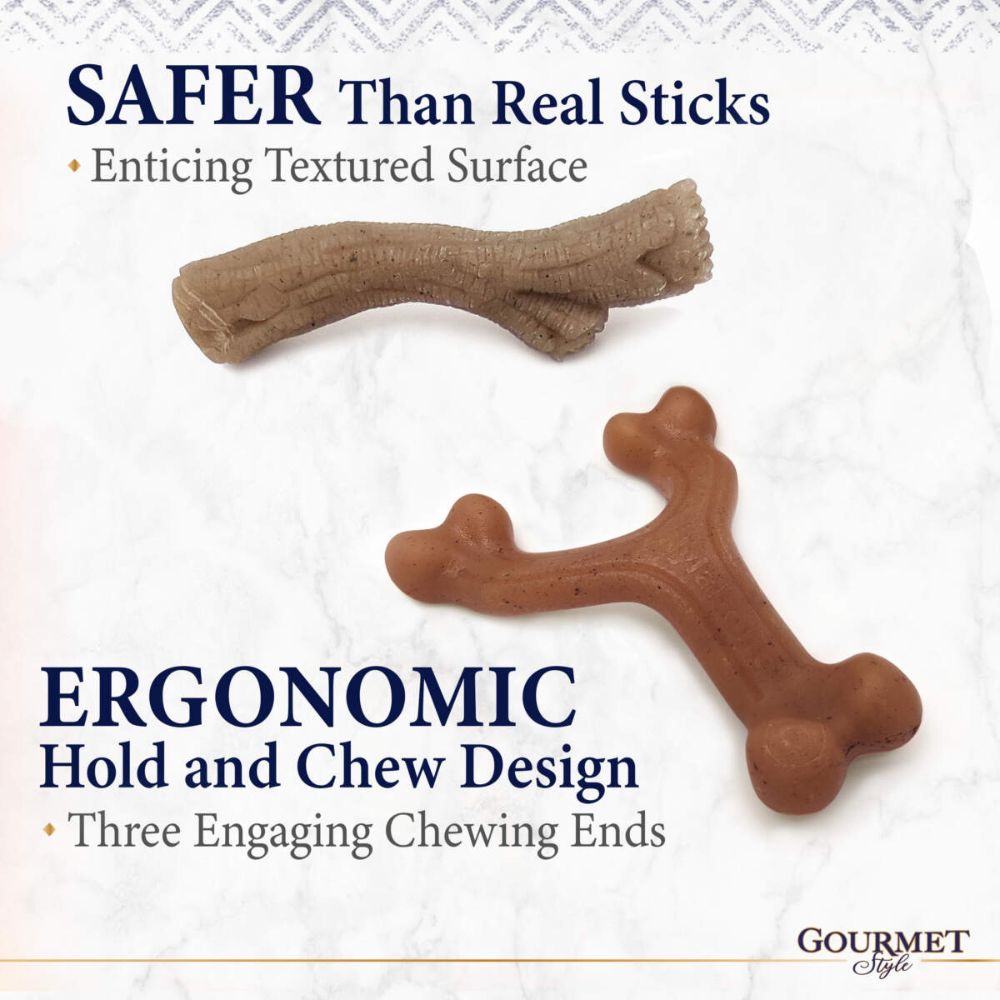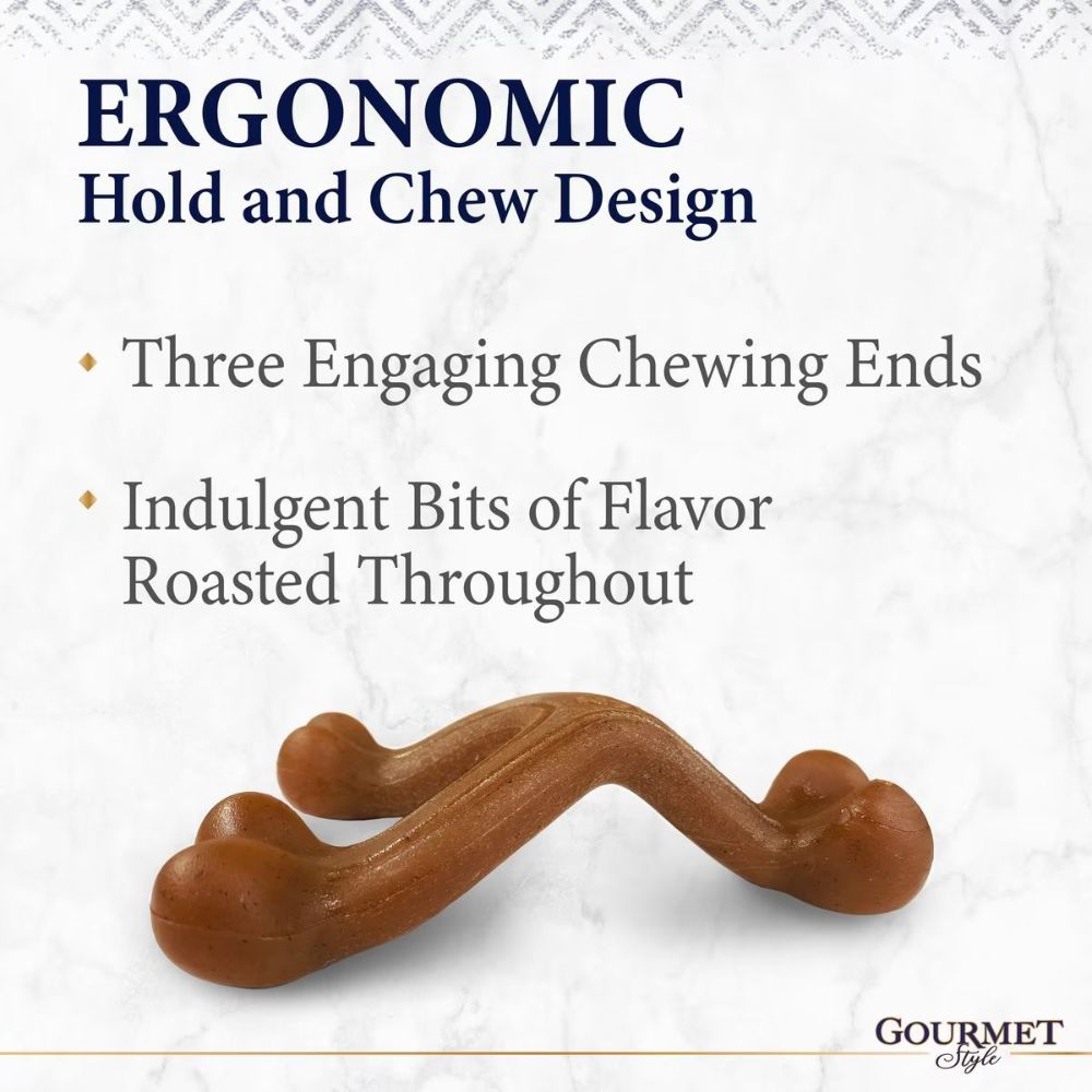 Inspired by that distinct "this is the life" feeling of satisfaction, Gourmet Style chew toys is created to wow flavor-obsessed dogs who crave a new type of chewing experience! Featuring bold flavor roasted throughout, this Gourmet Style Strong Chew wishbone dog toy contains enticing bits of tasty goodness you can see—leaving even the most particular pups with a sense of chewing gratification. With an arched ergonomic design, the wishbone shape is easy to hold and chew from any angle. Plus, it offers three different chewing ends and helps clean teeth as dogs enjoy. We guarantee your dog will love this crave-worthy dog chew toy that is veterinarian recommended and proudly made in the USA!