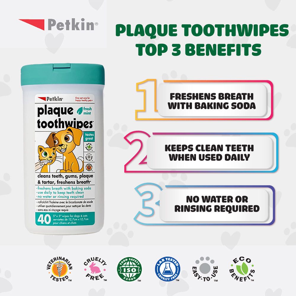 Toothwipes provide a convenient way to keep your pet's teeth and gums clean and healthy everyday. Each soft wipe is moistened with a natural baking soda formula that gently cleans while freshening breath.