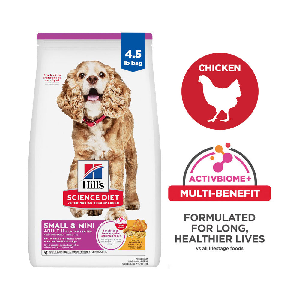 Hill's Science Diet Adult 11+ Small & Mini Chicken, Brown Rice & Barley Recipe Dog Food 4.5lbs