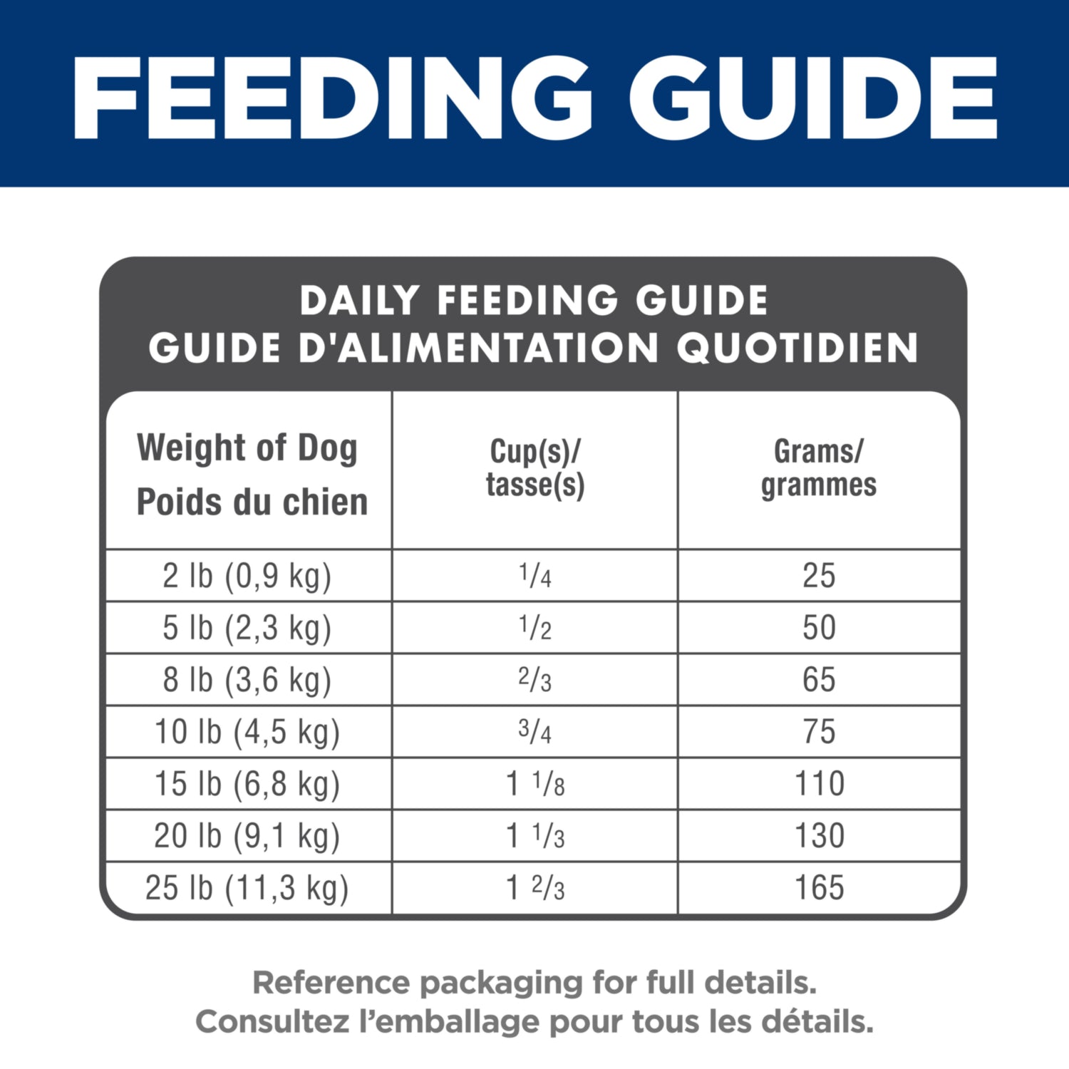 Weight of Dog - lbs (kgs) Amount per Day - cups (grams)