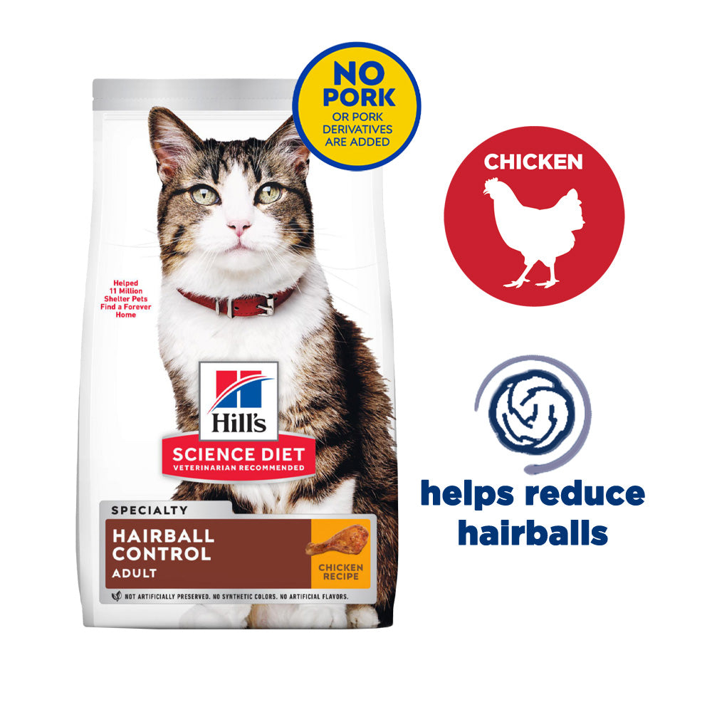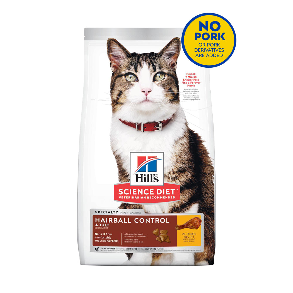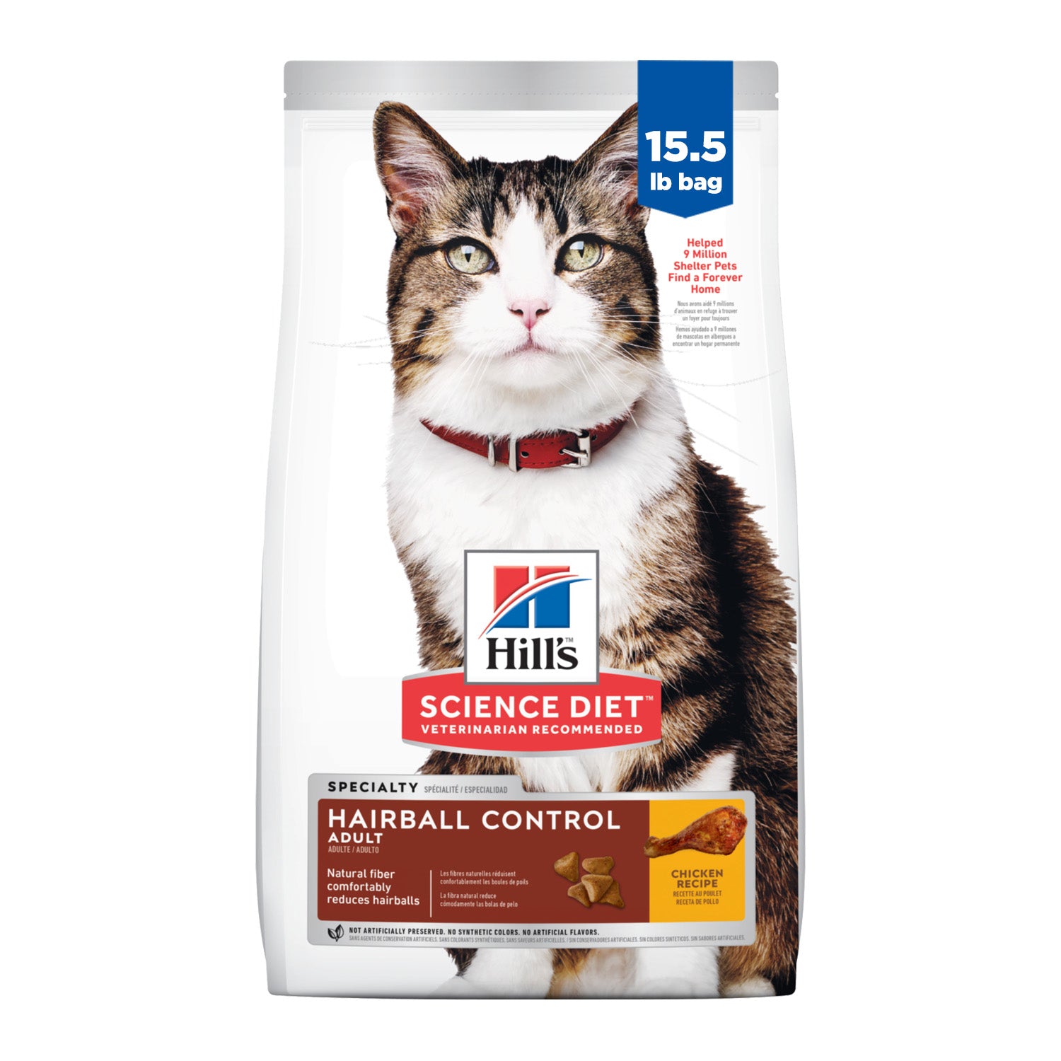 Hill's Science Diet Adult Hairball Control cat food is formulated to meet the nutritional levels established by the AAFCO Cat Food Nutrient Profiles for maintenance of adult cats.