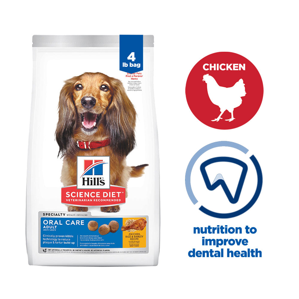 Hill's Science Diet Adult Oral Care dog food is formulated to meet the nutritional levels established by the AAFCO Dog Food Nutrient Profiles for maintenance of adult dogs.