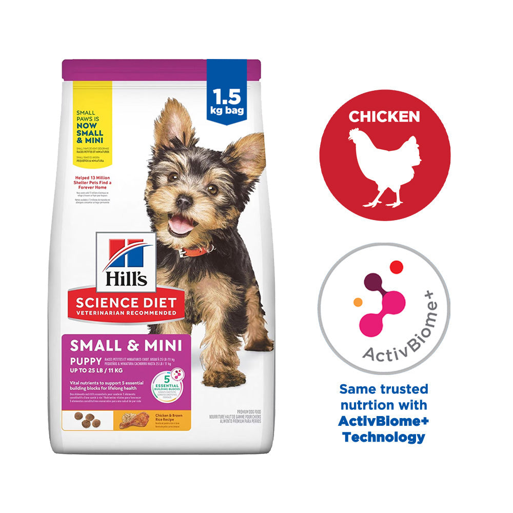 Animal feeding tests using AAFCO procedures substantiate that Hill's Science Diet Puppy Small & Mini Chicken & Brown Rice Recipe provides complete and balanced nutrition for growing puppies and gestating or lactating adult female dogs.