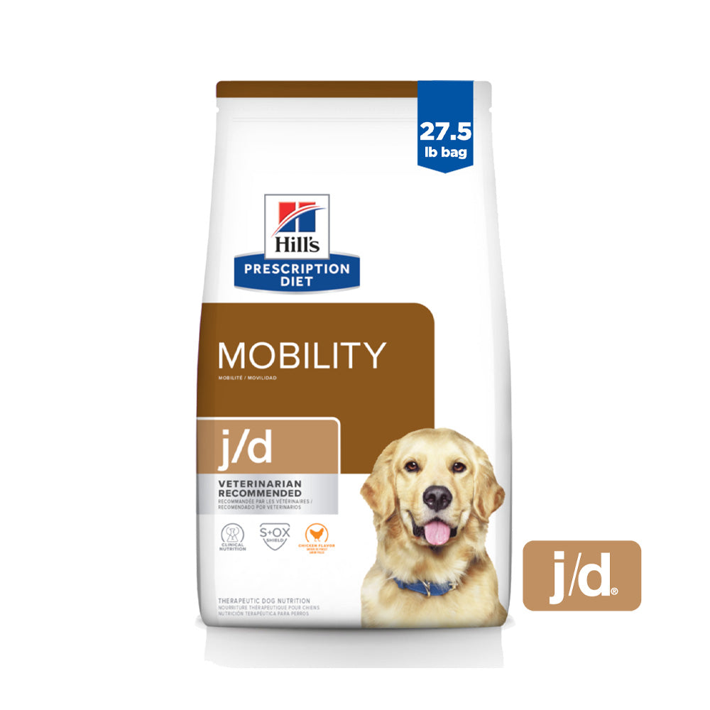 Hill's Prescription Diet j/d helps your dog walk, run and jump more easily in as little as 21 days. Hill's Prescription Diet j/d Dry Dog Food is a complete and balanced food that provides all the nutrition your dog needs.