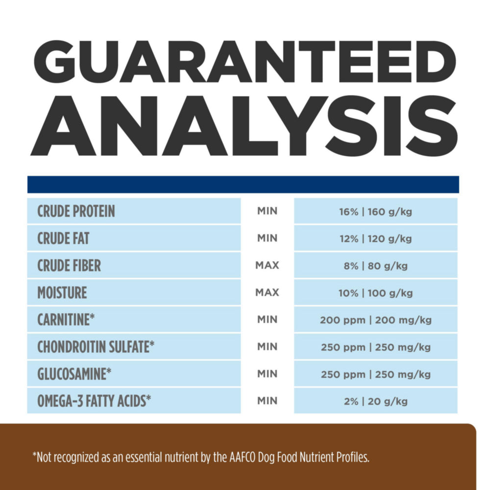 - Enriched with omega-3 fatty acids, glucosamine & chondroitin sulfate