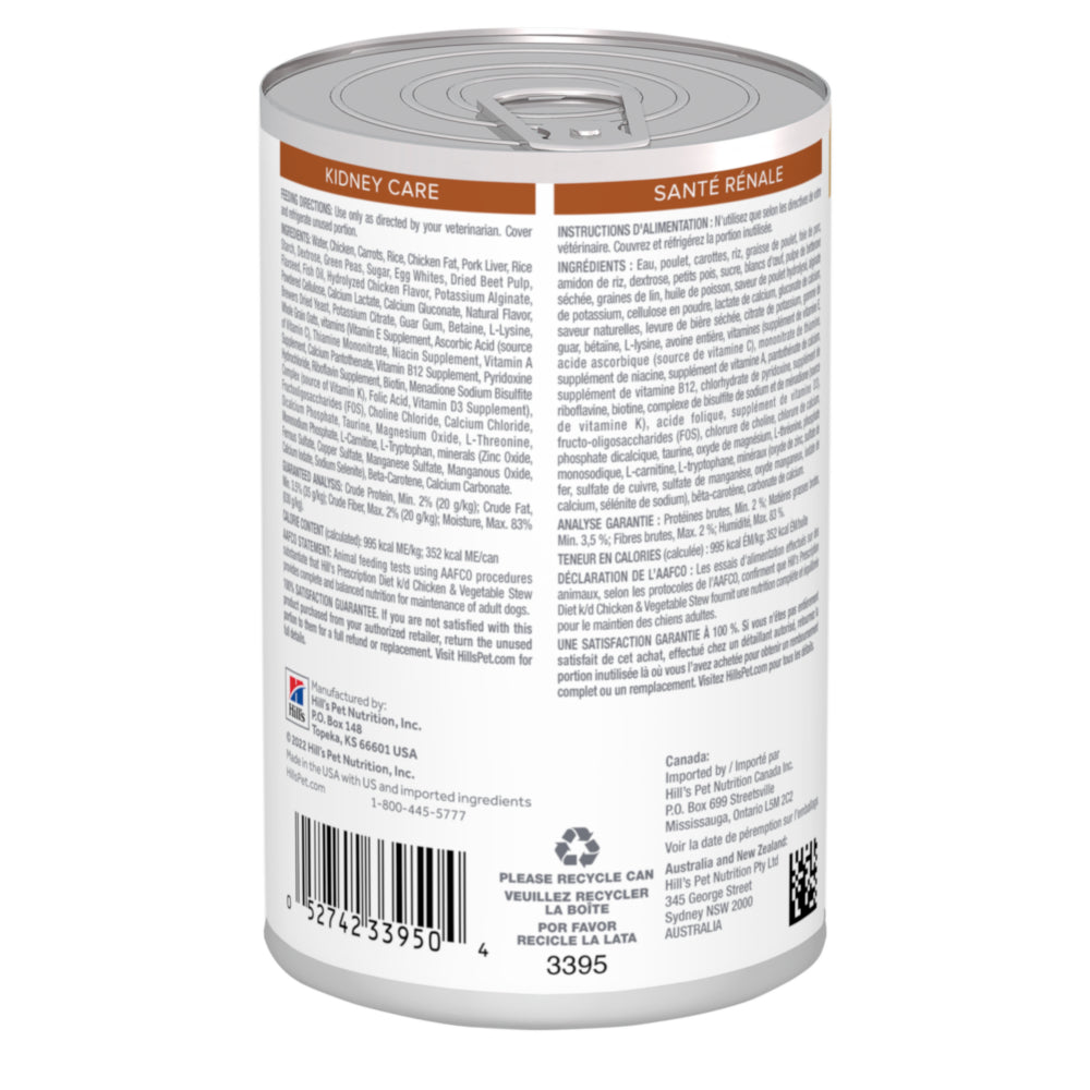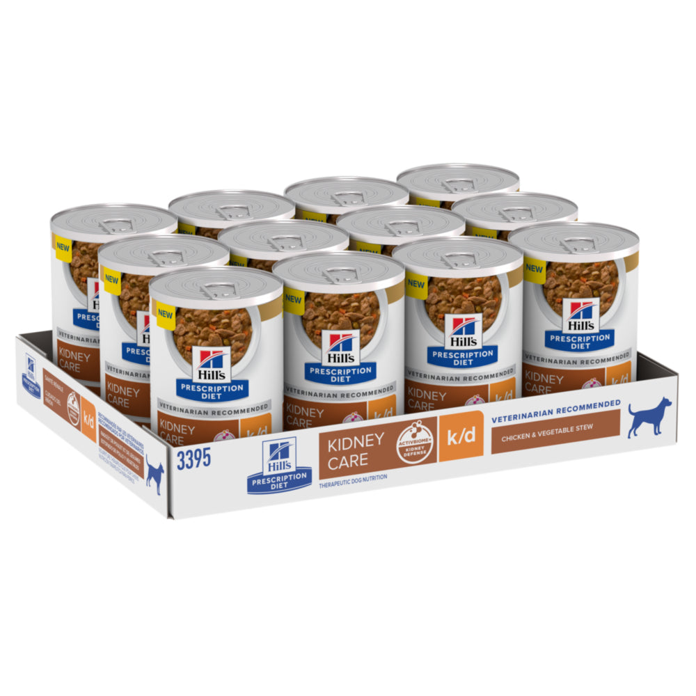 Hill's Prescription Diet k/d Chicken & Vegetable Stew Wet Dog Food is a complete and balanced food that provides all the nutrition your dog needs. Please consult your veterinarian for further information on how our Prescription Diet foods can help your dog to continue to enjoy a happy and active life.
