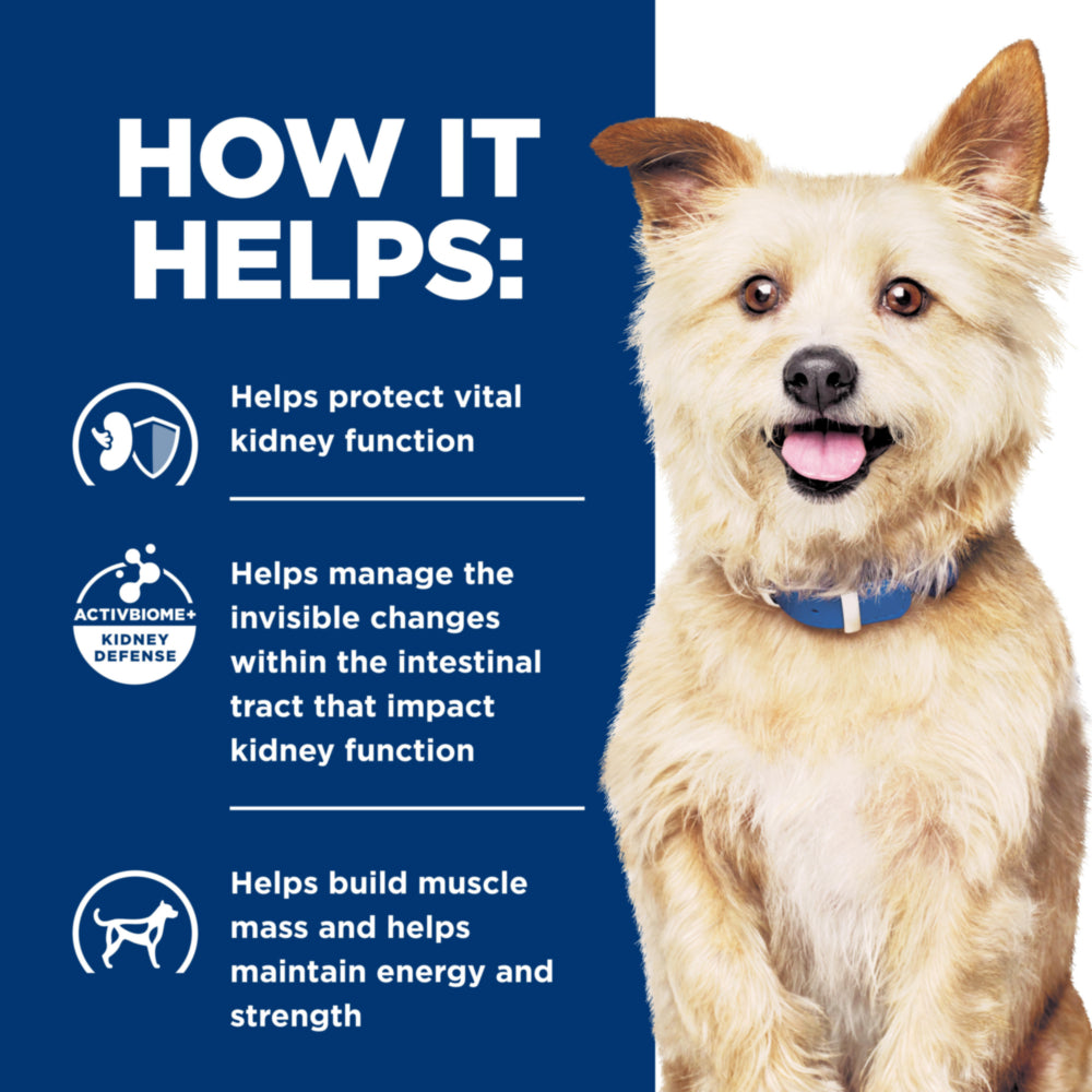 Hill's nutritionists and veterinarians developed Hill's Prescription Diet k/d clinical nutrition with ActivBiome+ Kidney Defense, a proprietary blend of prebiotics shown to activate the gut microbiome to help protect kidney function. Prescription Diet k/d is available in multiple wet forms & flavors to entice even the pickiest of eaters.