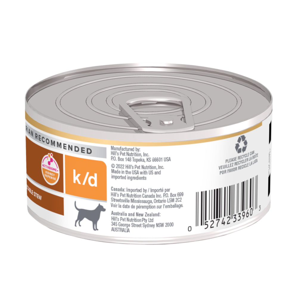 Hill's Prescription Diet k/d Chicken & Vegetable Stew Wet Dog Food is a complete and balanced food that provides all the nutrition your dog needs. Please consult your veterinarian for further information on how our Prescription Diet foods can help your dog to continue to enjoy a happy and active life.