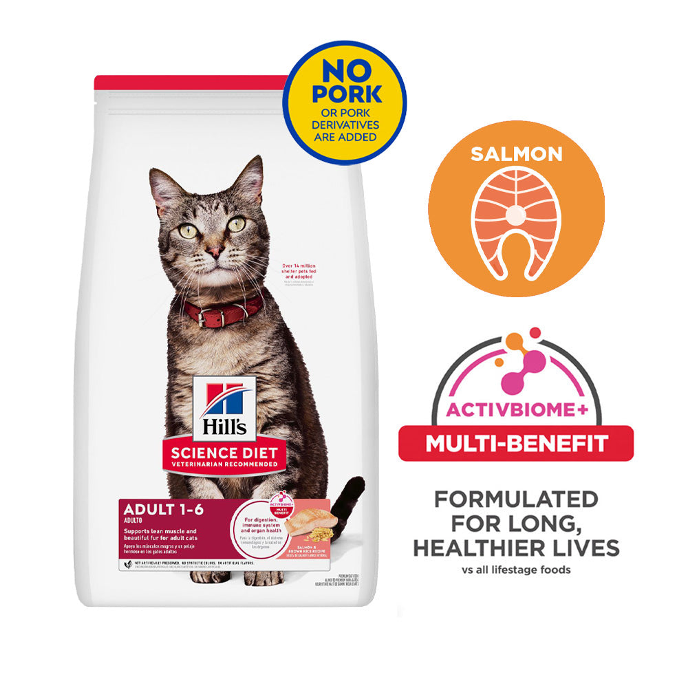 Hill's Science Diet Adult dry cat food is specially formulated to fuel the energy needs of cats during the prime of their life. Made with high quality, easy-to-digest ingredients.