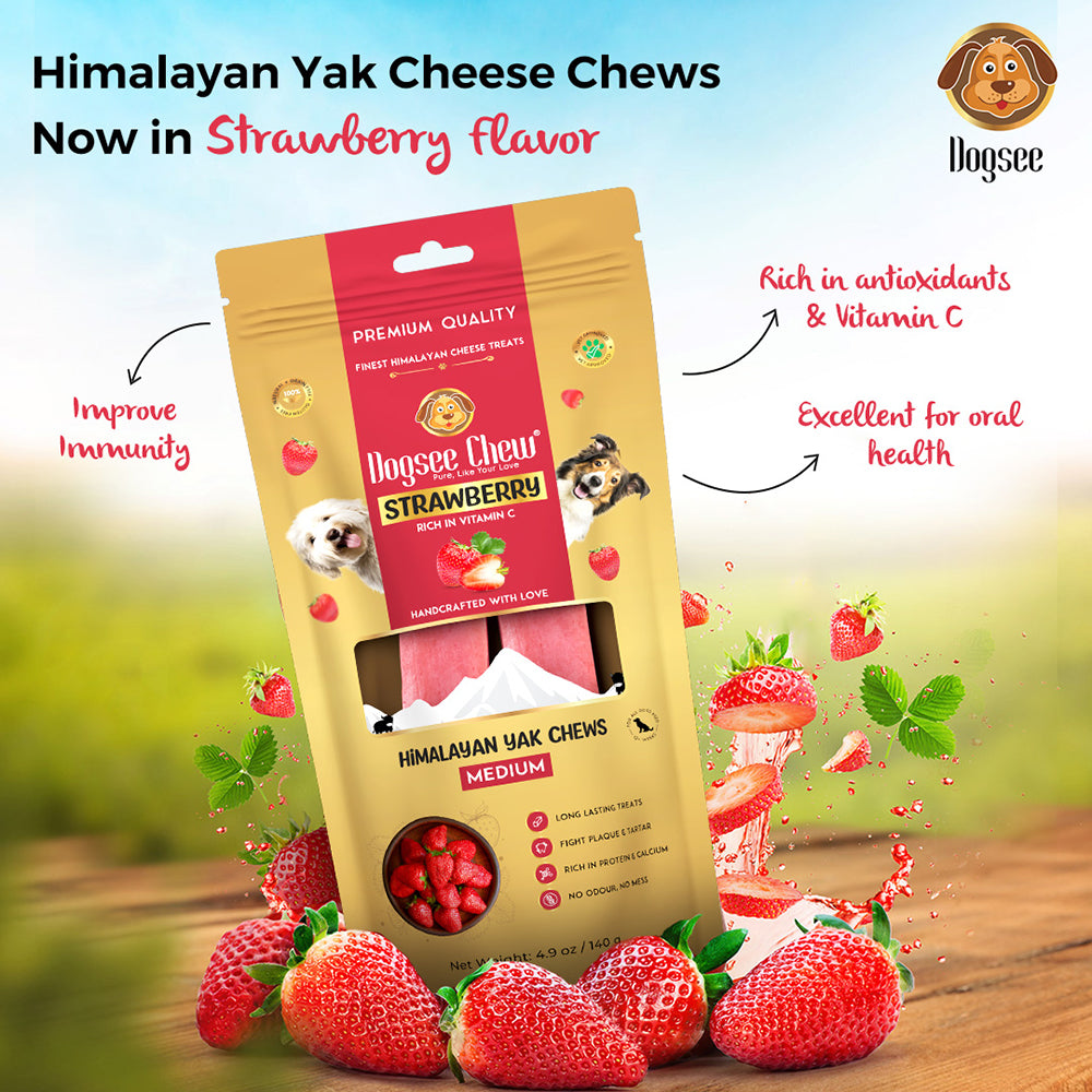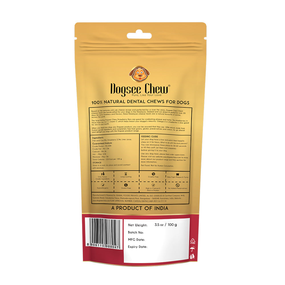 The long-lasting Dogsee Chew Strawberry Bars are great for combatting plaque and tartar. The strawberries in these bars are rich in Vitamin C which helps boost your doggo's immunity. Omega-3 in strawberries is also good for skin & coat