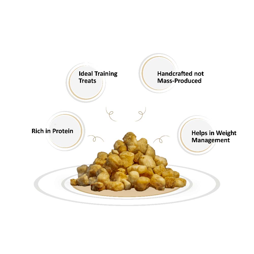 These cheesy treats are enriched with curcumin from turmeric, and protein to make treat time more nourishing. These delicious goodies are handcrafted in the Himalayas with 100% natural ingredients and contain powerful antioxidants and protein for a guilt-free treat. The curcumin present in turmeric helps support immune and joint health, while the low fat content keeps your pup from packing on the pounds. They are also optimally sized, so you can grab a handful and make rewards all the more exciting for your little one.