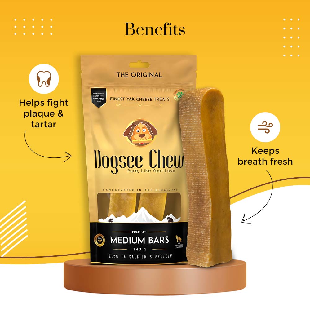 Give your dogs some of Dogsee Chew’s long-lasting natural dog chews and see them chewing for a long time. These delicious cow and yak cheese hard chews for dogs are made from the finest cow and yak milk churpi sourced from the Himalayas and smoke-dried to perfection for 35 days for extra hardness. These vegetarian dog treats are great for fighting plaque and tartar. The rich flavor also helps keep their breath fresh.