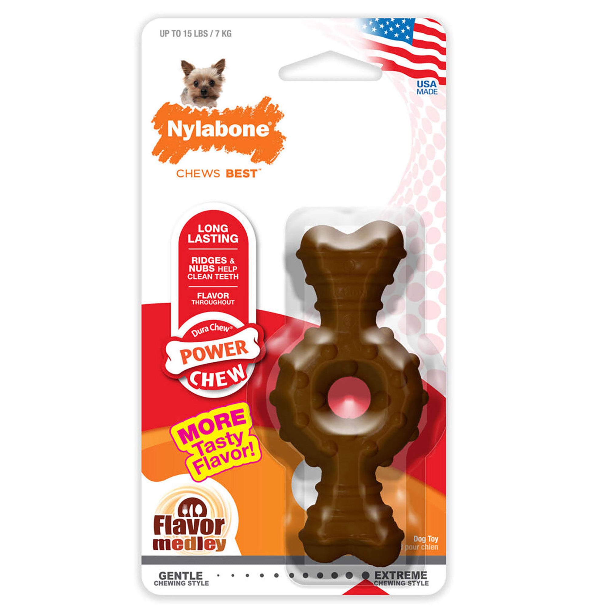- Long-lasting nylon chew toy promotes healthy, non-destructive chewing habits