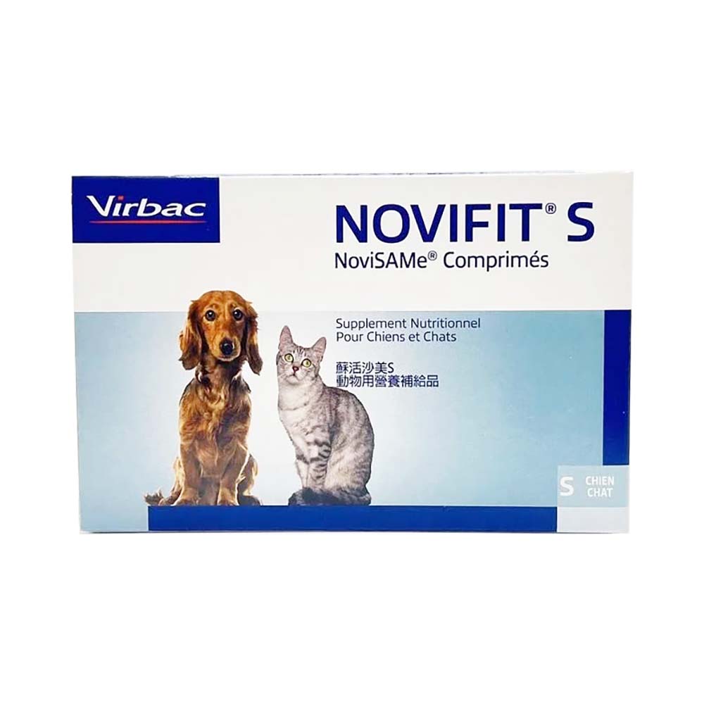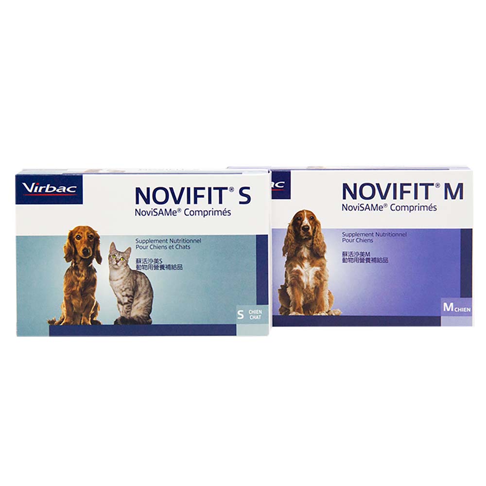 Virbac Novifit S helps support cognitive function (level of activity and awareness) of aging dogs and cats. Novifit S is a highly pure and stable form of SAMe (NoviSAMe) presented in an enteric-coated tablet. S-adenosylmethionine (SAMe), a molecule naturally present in the body, and are recommended for use in senior dogs and cats to help improve their level of activity and awareness and to help manage behavioral disorders linked to brain aging.