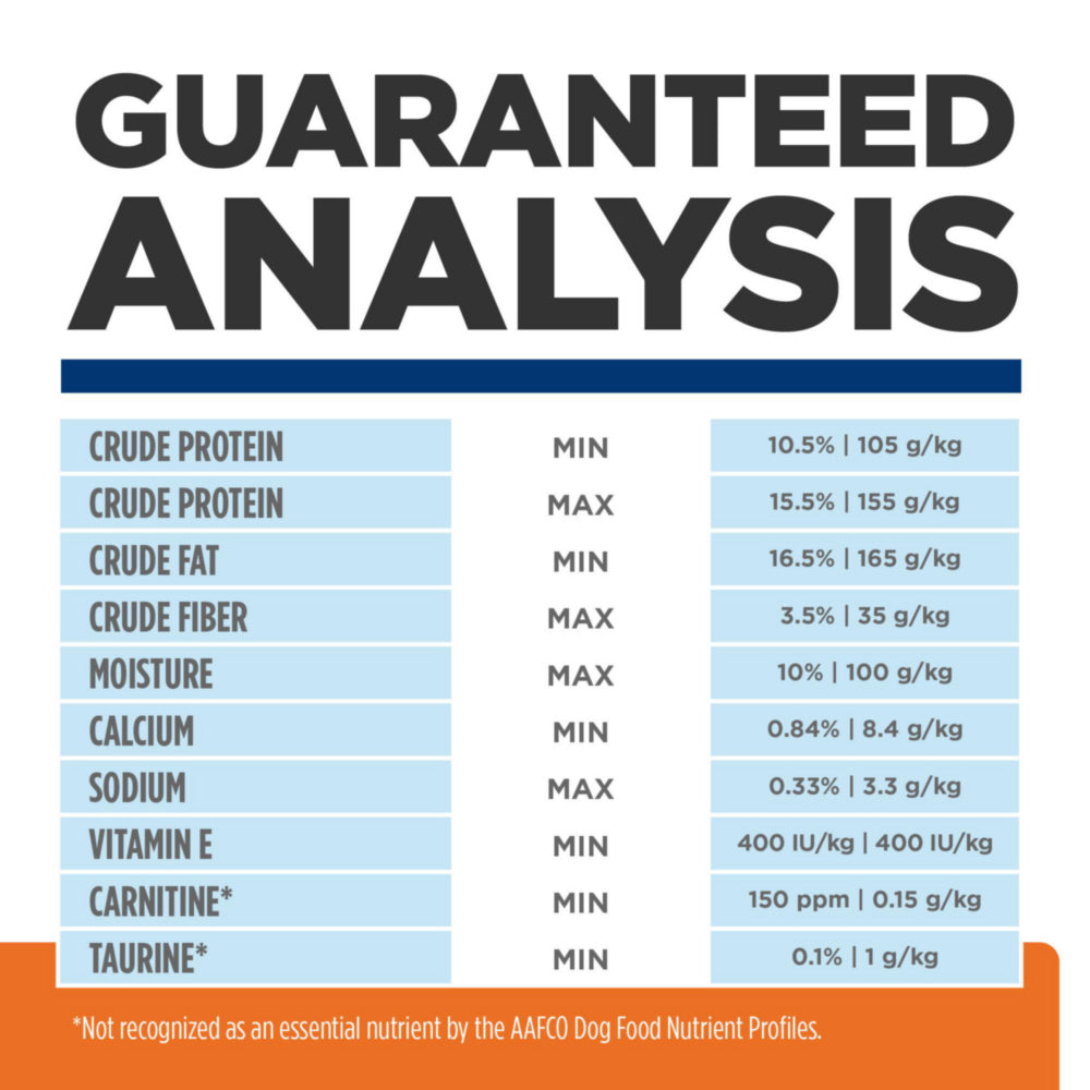 1The nutrient in the product after moisture is removed. It is used to make direct comparisons of nutrient profiles with differing moisture contents.
