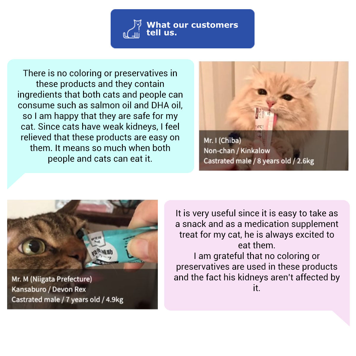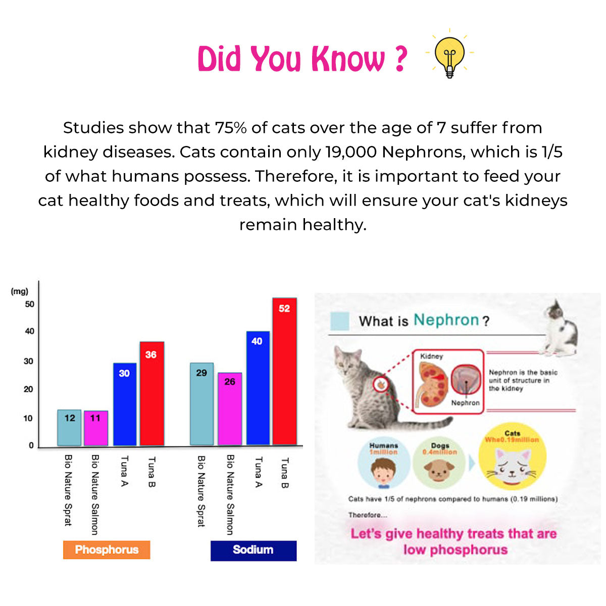 The first kidney-friendly cat treat that's 100% natural! Low phosphorus, low sodium, healthy snack that veterinarians confidently recommend. It’s a kidney-friendly treat that also tastes great. The perfect choice when your cat loses appetite, recovering from surgery or needs an energy booster. Suitable for all ages and all breeds. Carefully selected human-grade ingredients, that are 100% Natural. No preservatives, No coloring agents, No artificial flavoring, Non-GMO, Grain free, Gluten free, Pork Free.