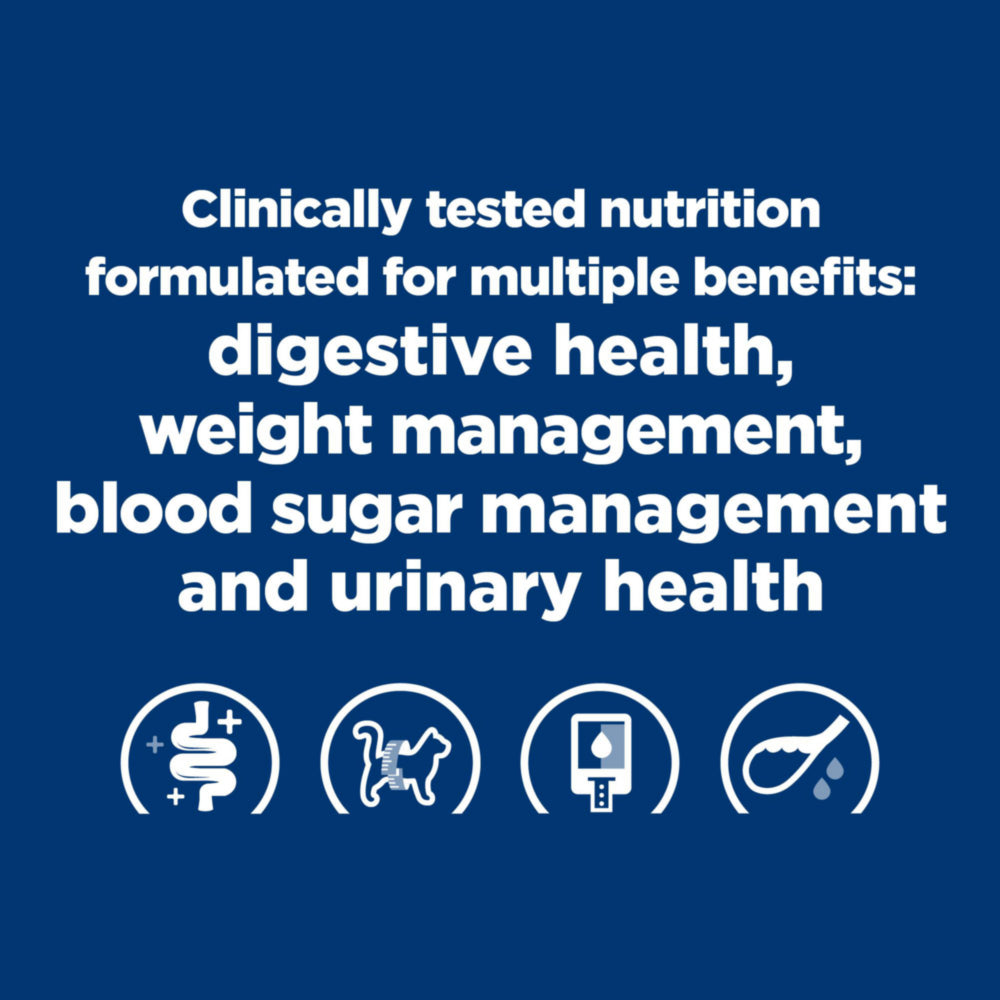 Hill's Prescription Diet w/d Multi-Benefit contains an optimal blend of soluble and insoluble fiber and is clinically tested nutrition for conditions that respond to fiber including weight management, digestive issues, and glucose management.