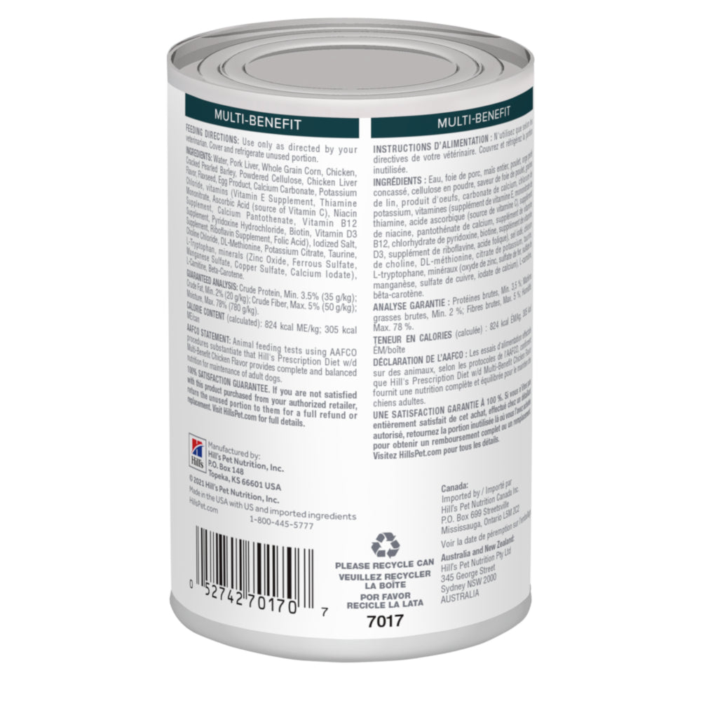 Hill's Prescription Diet w/d Multi-Benefit Wet Dog Food is a complete and balanced food that provides all the nutrition your dog needs. Please consult your veterinarian for further information on how our Prescription Diet foods can help dogs to continue to enjoy a happy and active life.