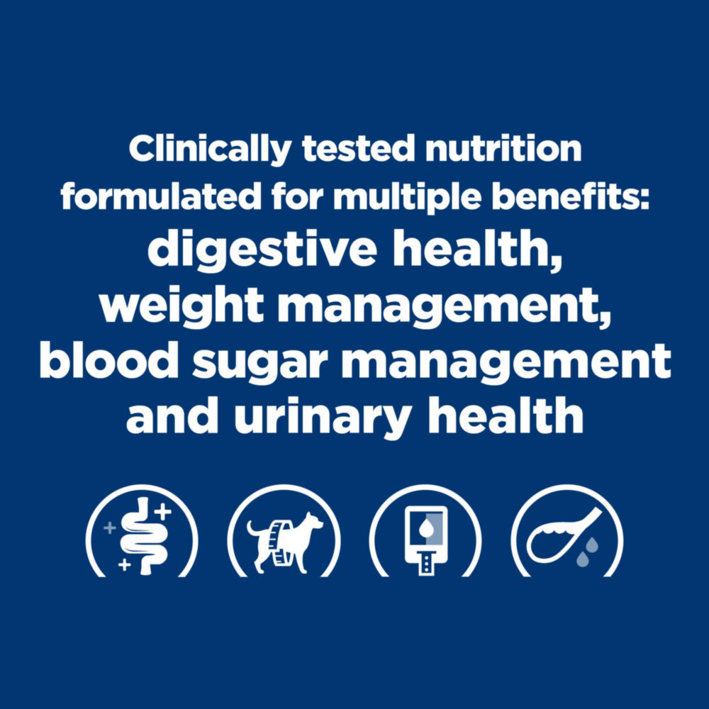 Hill's Prescription Diet w/d Multi-Benefit is uniquely formulated to benefit your pet on multiple levels: urinary health, digestive health, blood sugar management and weight management.
