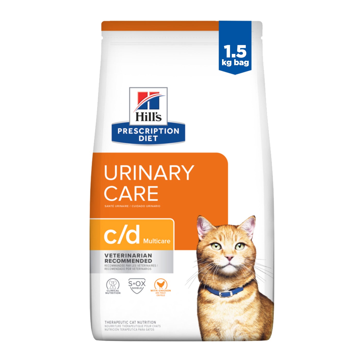 Hill's nutritionists & veterinarians developed Prescription Diet c/d Multicare clinical nutrition specially formulated to support your cat's urinary health. In fact, c/d Multicare is clinically tested nutrition to lower the recurrence rate of the most common urinary signs by 89%.