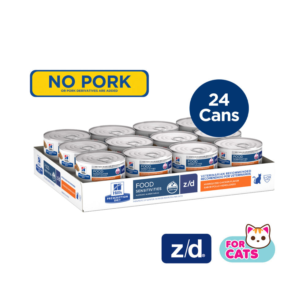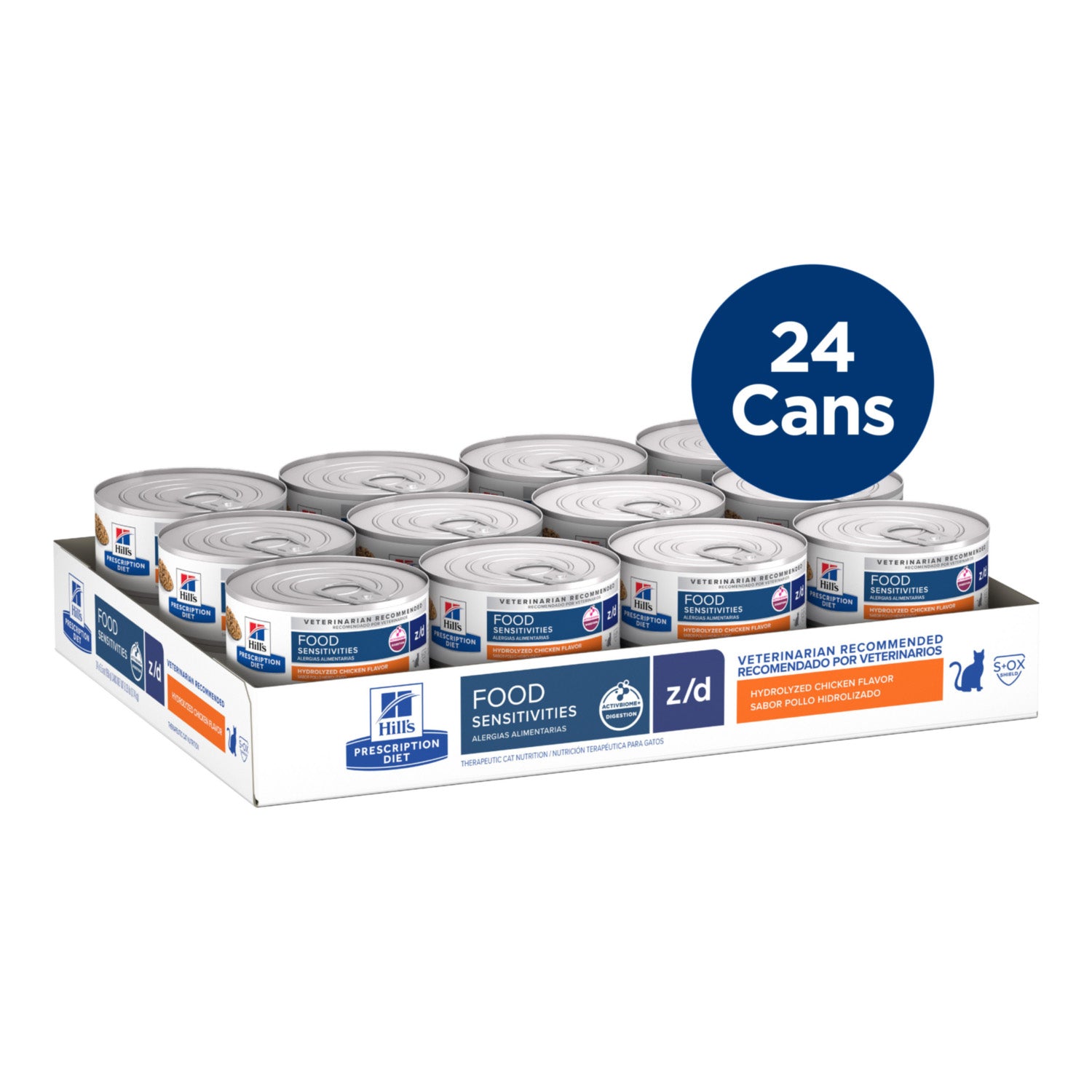 Hill's Prescription Diet z/d Wet Cat Food provides complete and balanced nutrition to support cats with food sensitivities. Please consult a veterinarian for more information on how Prescription Diet foods can help cats maintain a happy and active life.