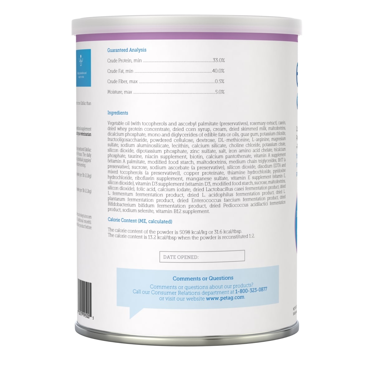 Newborn to 6-week-old Puppies: Feed puppies 2 tablespoons (30mL) of reconstituted Esbilac per 4 ounces (115g) of body weight daily. Puppies should be fed every 3-4 hours. The daily feeding amount should be divided into equal portions for each feeding. Individual puppies’ needs may vary. Warm reconstituted Esbilac to room or body temperature before serving.