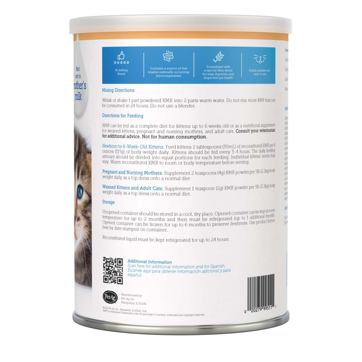 Directions for Feeding: KMR can be fed as a complete diet for kittens up to 6 weeks old or as a nutritional supplement for weaned kittens, pregnant and nursing mothers, and adult cats. Consult your veterinarian for additional advice. Not for human consumption.