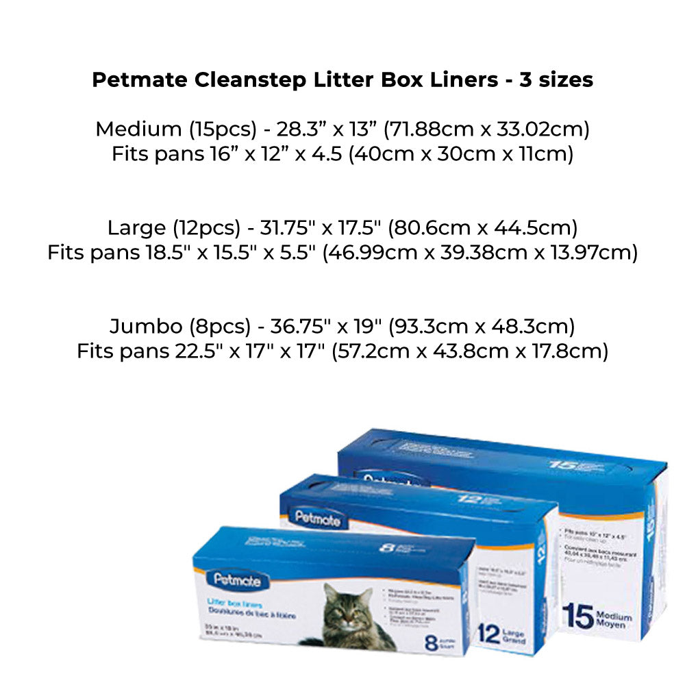 Petmate Litter Pan Liners, are disposable plastic liners that make cleanup of your cat's litter pan a snap. Their dependable construction is tear-resistant and keeps waste from caking to the inside walls of your cat's litter pan box while allowing you to carry out large loads of litter.