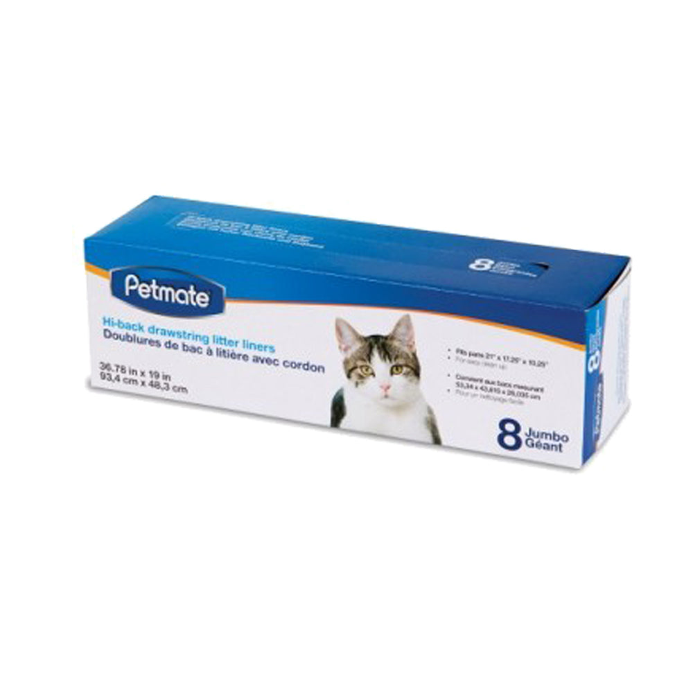 Petmate Hi-Back Drawstring Litter Liners disposable plastic liners makes cleanup a snap. Liners help keep cat litter pans clean and neutralize odors. Drawstring holds securely on pan. Draws tight for easy, clean disposal. Spread liner over litter pan so that it overhangs rim on all sides. Press center of liner down to bottom of pan, and smooth outward. Fill the pan and liner with litter according to package directions. Sift out solid waste daily. To remove litter simply lift the liner from all sides, gather above pan and tie.