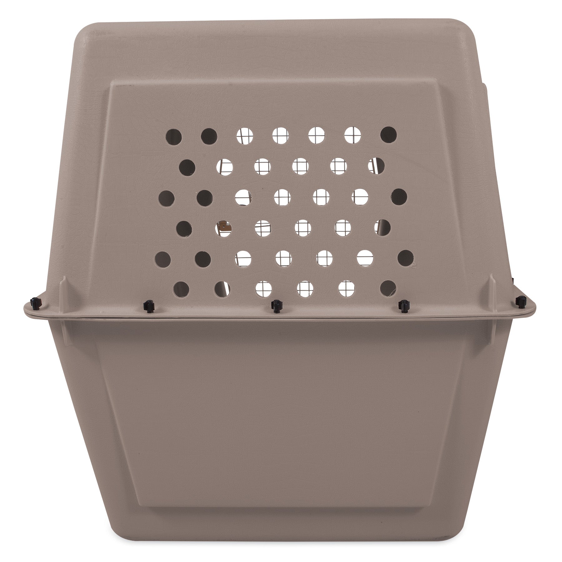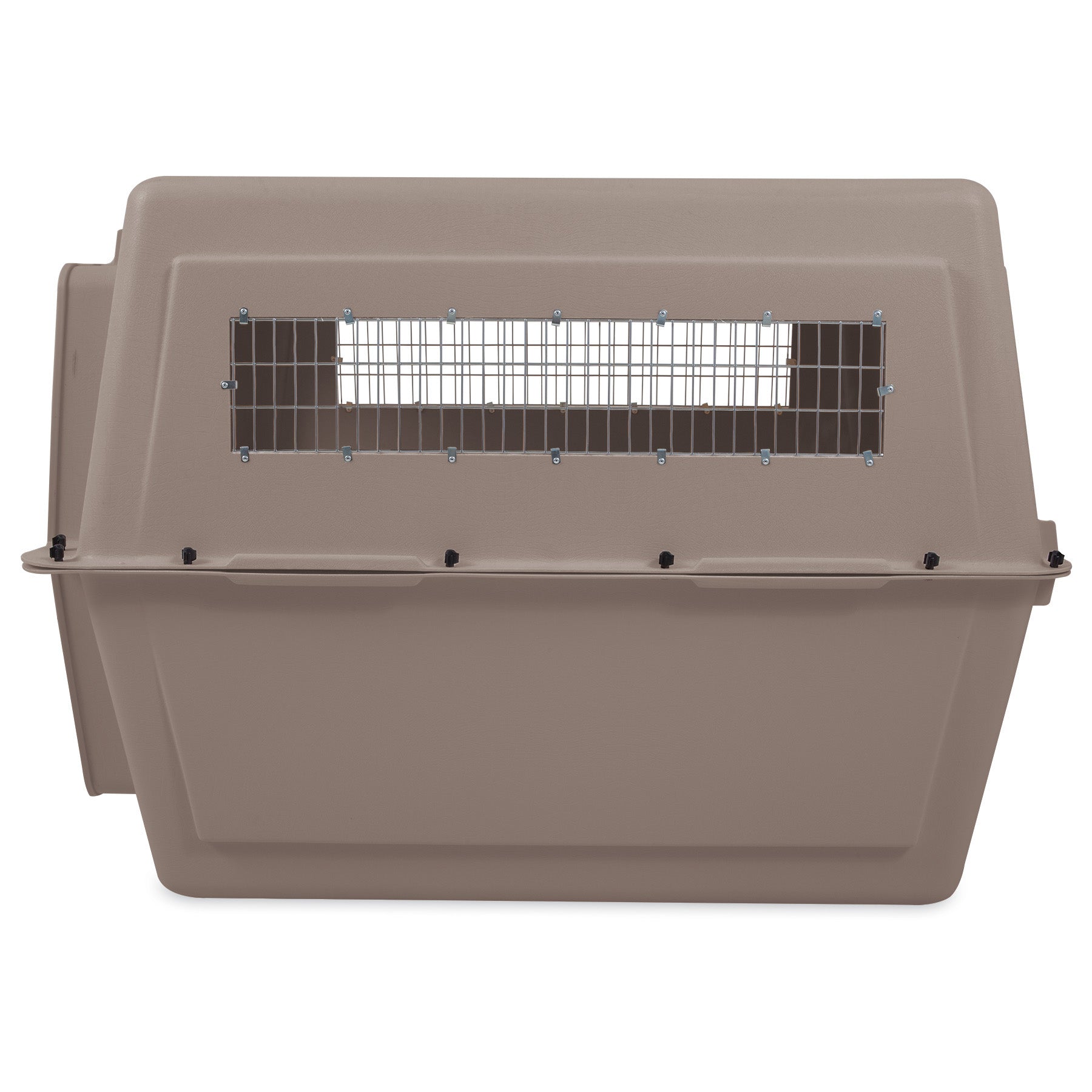 Perfect for housebreaking, the Petmate Vari Kennel is ideal for training and traveling. Features include tough durable construction with an easy-open squeeze latch, vents on side walls, an interior moat to keep pets dry, and tie-down strap holes on the perimeter for zip-tie installation and extra security during airline travel.